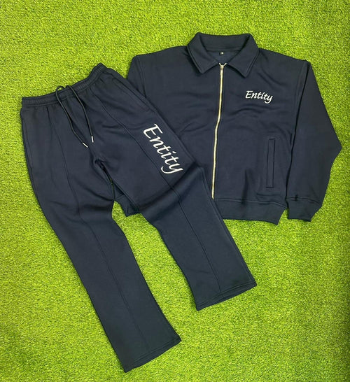 Entity's Navy Blue Classic Light Weighted Cotton Tracksuit Fleece & Bottoms